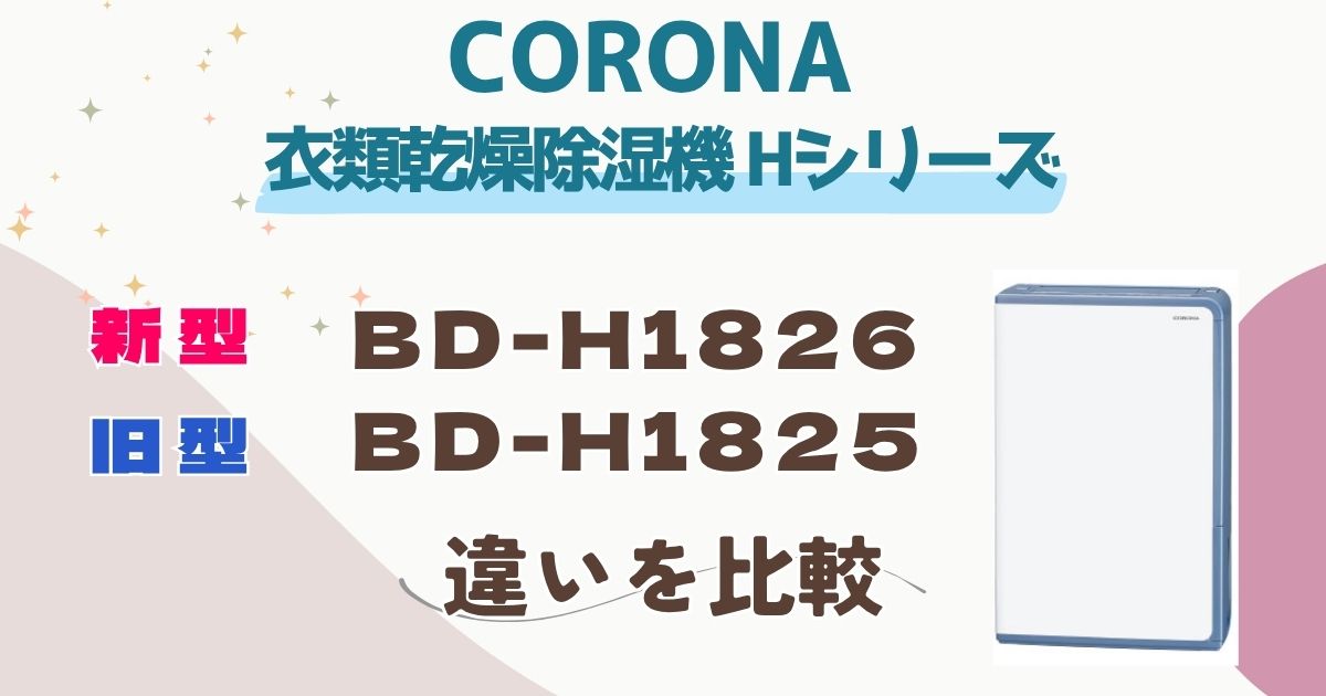 コロナの衣類乾燥除湿器 最新モデルBD-H1826と、その型落ちBD-H1825の違いについて、徹底比較しました! BD-H1826とBD-H1825の機能にはどんな違いがあるのかな? まずは... -