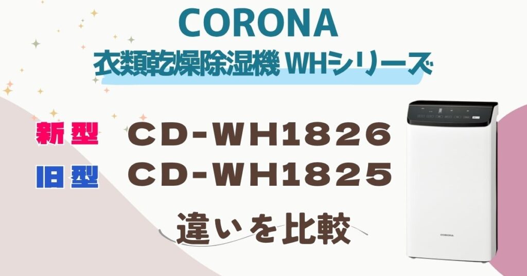 コロナの衣類乾燥除湿器CD-WH1826と、その型落ちCD-WH1825の違いについて、徹底比較しました! CD-WH1826とCD-WH1825の機能にはどんな違いがあるのかな? まずは結論か... -